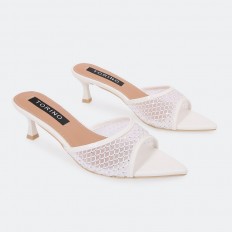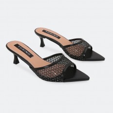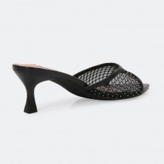 We present to you these slipper from Torino, featuring a luxurious design with a piece of tulle adorned with strass in a distinctive pattern, suitable for all occasions.