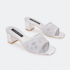 With an elegant design, we present to you these slipper, featuring a 5 cm wide heel, made of tulle adorned with strass in a striking floral design, available in basic colors.