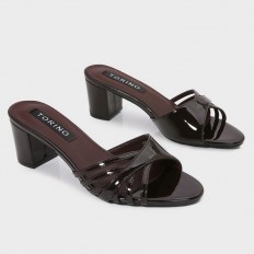 Wide-heeled slippers with a 5cm heel made from shiny leather, with a unique design, comfortable and suitable for all your looks. Always stand out by shopping from Torino Store.