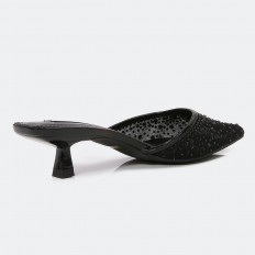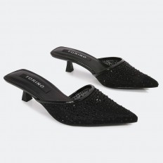 Shine with these Torino slippers with 3cm heels, luxurious design with a part of tulle decorated with shiny strasses, suitable for all times