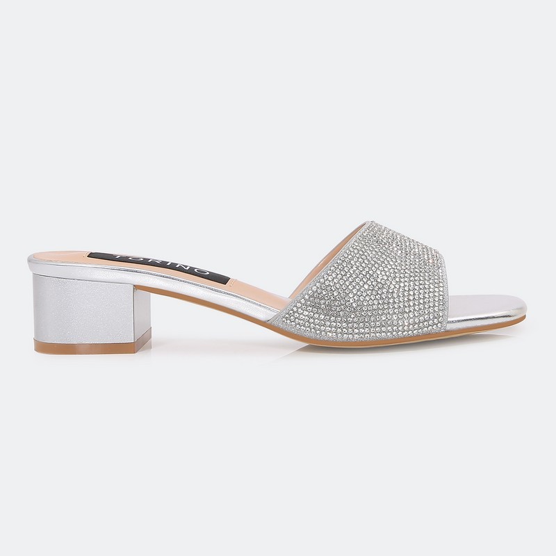 Create an elegant look with these 3 cm heeled slippers , decorated with a bright strass , designed for all times
