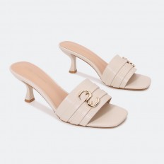 Turin elegant 5cm heel slippers made of faux leather distinctive with two buckles, in colors that can be coordinated with different options