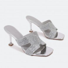 These slippers are indispensable in your shoe collection, with a shiny heel of 7 cm, elegantly decorated with crystals, suitable for parties