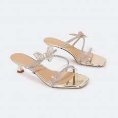 These slippers are an ideal choice for your party look, elegant design with a transparent toe and decorated with crystal ropes and butterfly, with a heel of 3 cm and elegant colors
