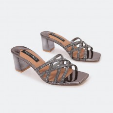 QXQ1666 Shiny heel slippers with a square toe - Torino