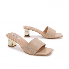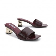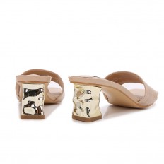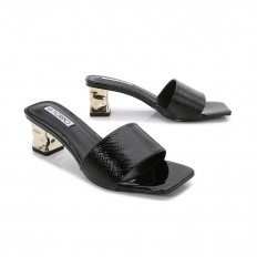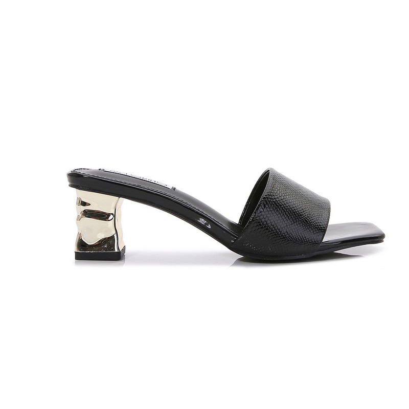 Shiny mid-heeled slippers with attractive design
