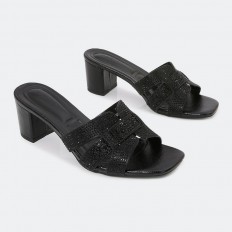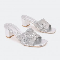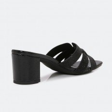 ZXQ1510 Slippers with wide heels studded with Strass