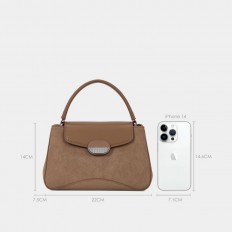 You can carry this compact bag by hand or on your shoulder using the detachable strap. It has a sleek design with attractive colors, contains two layers, and has a lock for closure.