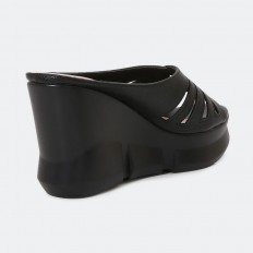 These slippers combine comfort and elegance , with a 9 cm wedge heel , and an elegant faux leather design, suitable for all times