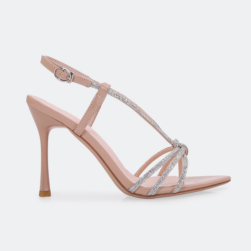We present to you an evening sandal with crystal-embellished straps for a stunning look on all occasions, feaTorinog a shiny 9cm heel, with an ankle strap and buckle closure.