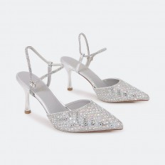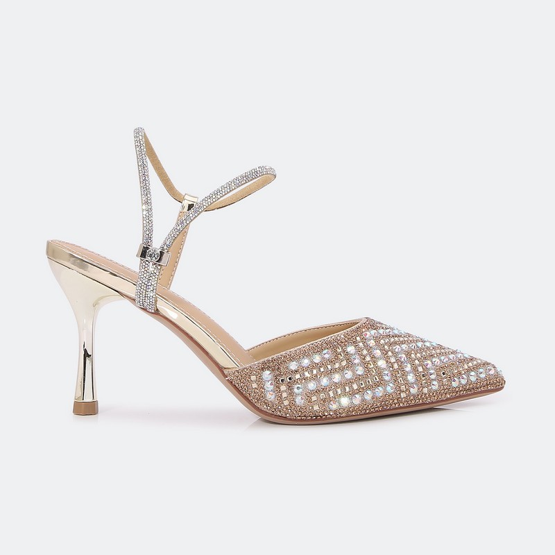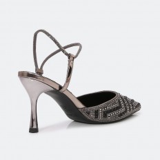 This will become your favorite sandals, closed toe and 7cm heel, decorated with strass in a distinctive way, buckle detail front and back, colors to suit all looks
