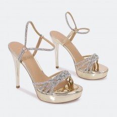 Shine with this 12 cm heeled sandal, shiny and elegant adorned with luxurious crystal ropes feaTorinog front and back buckles, suitable for parties.