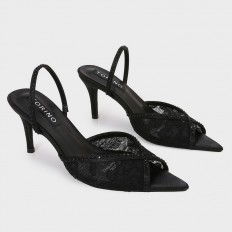 This sandal is an ideal choice for your daily look, feaTorinog an elegant design with a luxurious lace front adorned with strass, a 7 cm heel, and available in stylish colors.