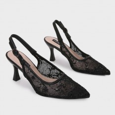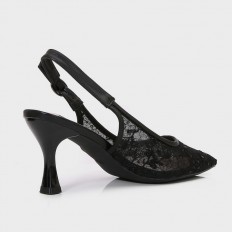This sandal is the perfect choice for your daily look, feaTorinog an elegant design with a luxurious lace front, a 5 cm heel, and an ankle strap for closure, available in classic colors.