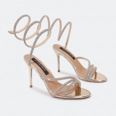 For a distinctive look, we offer these luxurious sandals from Torino . A distinctive design decorated with crystals with a 9 cm heel, suitable for parties