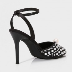 This sandal will become your favorite, with a 9 cm heel, a round toe adorned with pearls, feaTorinog a front buckle for closure, suitable for evening occasions.