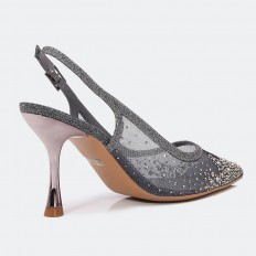 Shine with these 7 cm heel sandals, luxurious design with a part of tulle decorated with shiny strass, ankle strap and buckle closure, suitable for all times