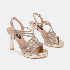 Add elegance to your look with this 9 cm heel, featuring an attractive design with rhinestone-embellished ropes and an ankle strap closure. It can be coordinated with different options.