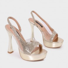 For a unique look, we present to you this 13 cm high-heeled sandal with a transparent part adorned with strass suitable for parties.