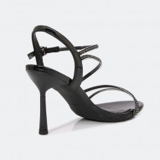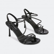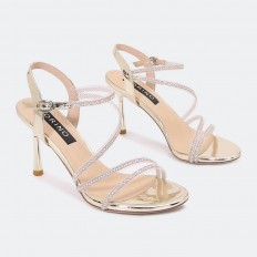 Let your look complete on important occasions with these sandals with 7 cm heels, with a distinctive design of ribbons studded with strass and an adjustable ankle strap