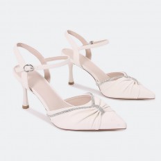 Distinctive soft and elegant stiletto sandals made of durable material decorated with bow and crystal rope, with 7cm heel with ankle strap closure