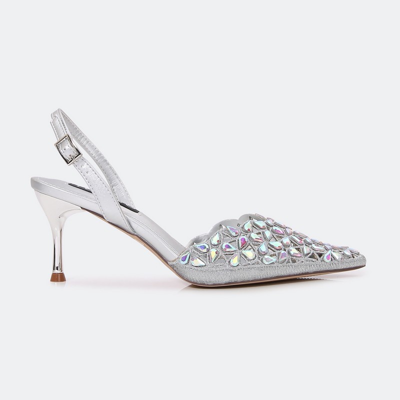 QSQ596 Strass embellished sandal with a thin heel