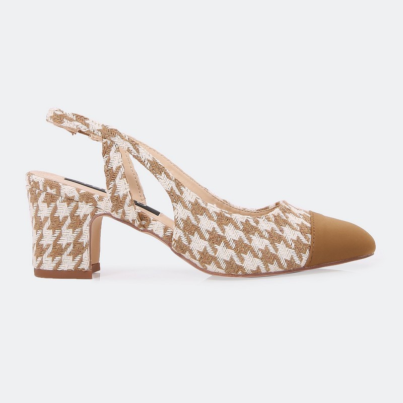 We offer you 5 cm wide heel sandals, with a closed toe and a distinctive knitted design, comfortable and suitable for daily use