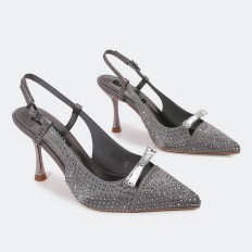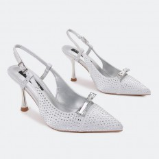 This sandal is indispensable in your shoe collection, with a heel of 7 cm and a luxurious design decorated with strass with an ankle strap and a front buckle, available in indispensable colors suitable for all times