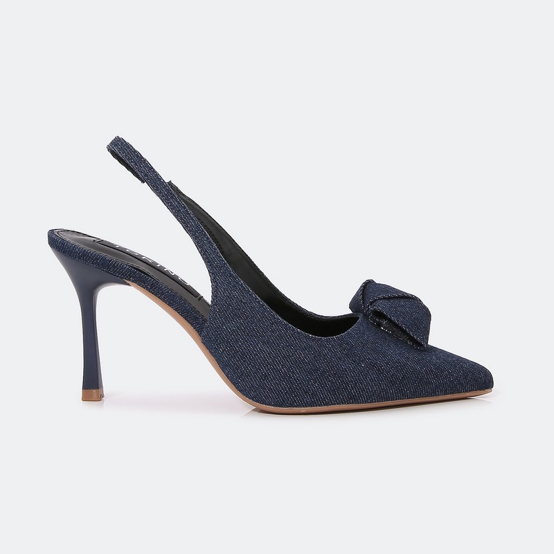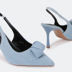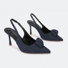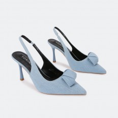 These sandals are a perfect choice for your everyday look. With an 8 cm heel and a closed pointed toe , a fashionable design and a material of jeans in distinctive colors