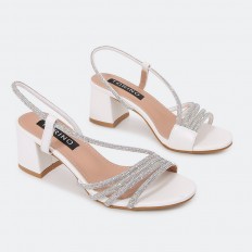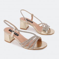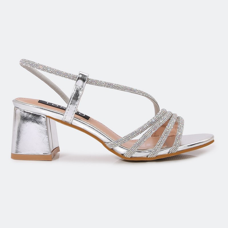 5cm wide heel sandals, shiny and elegant designed from shiny crystal ropes, with ankle buckle, designed to suit all your needs