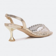 This sandal is a must-have in your shoe collection , With a 5 cm heel and a transparent design decorated with a strass , suitable for Evening Times