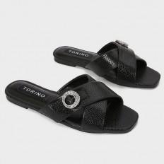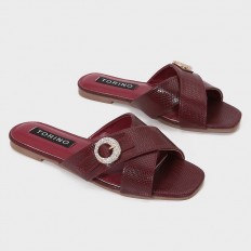 We present to you this slipper from Torino, feaTorinog a square toe made of snake leather adorned with a soft brooch, suitable for daily use.
