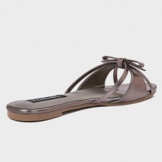 This slipper is considered suitable for your daily look, made of shiny faux leather with an open round toe decorated with a bow, available in colors that can be matched with different options.