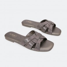 OX3060 Elegant flat slippers embellished with strass