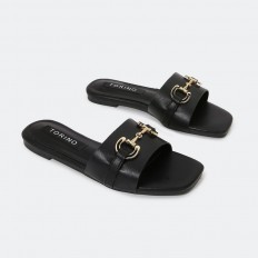 Introducing these slippers from Turin, with a square toe decorated with a gold accessory, available in indispensable colors and can be coordinated with different options