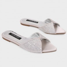 This slipper combines comfort and elegance, with an attractive design feaTORINOg a pointed toe adorned with rhinestones, suitable for daily use.