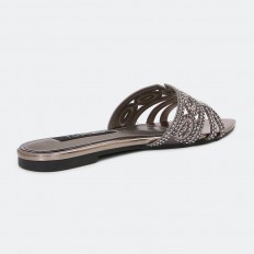 ZX2818 Flat sandals with a cut-out design embellished with rhinestones