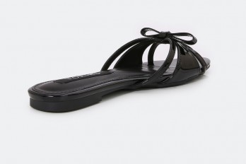 These slippers will become your favourite with a round toe embellished with a bow to a modern design in striking colors and a shiny leather material.