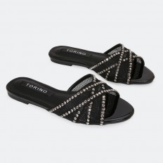 Shine with these flat slippers from Torinoo, an elegant design with a tulle part decorated with strass, available in essential colors