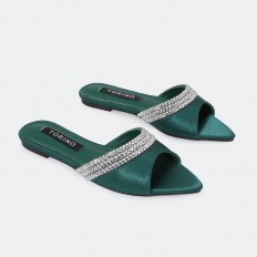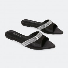 We present to you these flat slippers from Torinoo, with a pointed toe, made of satin material decorated with crystals, distinctive colors, and can be coordinated with different options.