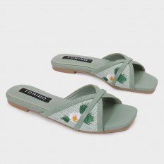 ZX3150 Elegant Flat slippers Embroidered with Flowers