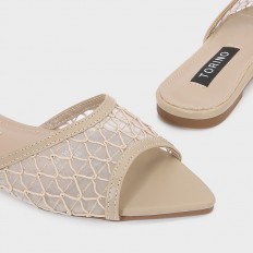 Add elegance to your daily look with these slippers, featuring a pointed toe with a tulle detail and an intertwined strap design, available in essential colors.
