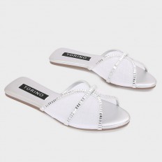 ZX3169 Flat slippers with a tulle part adorned withstrass