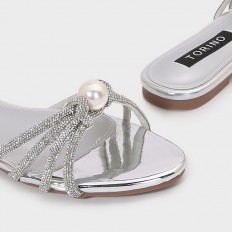 These slippers are essential in your shoe collection, featuring a rounded front made of crystal ropes adorned with a pearl, suitable for all occasions.