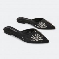 This will become your favorite slippers feaTorinog an elegant design with a pointed toe made of satin adorned with strass in a distinctive and stylish way, suitable for all occasions.