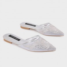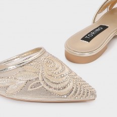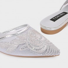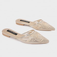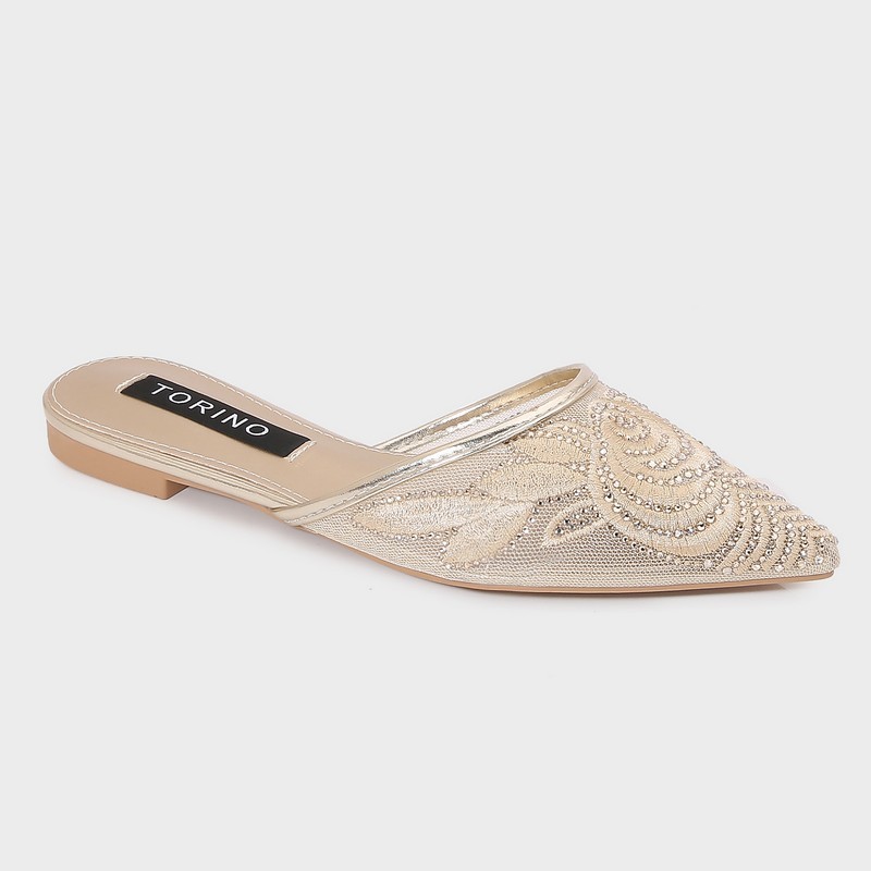 Shine with these flat slippers from Torino, featuring an elegant design with a floral embroidered tulle section adorned withstrass, available in must-have colors.