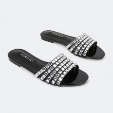 These slippers combine comfort and elegance , with a shiny faux leather design decorated with a strass , they can be coordinated with different looks