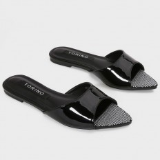 This slipper\ is essential in your shoe collection, with a shiny pointed toe, decorated with strass and can be styled with various outfits.