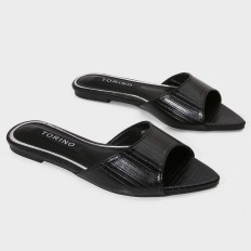 With a stylish and practical design, this slipper is a great choice for your daily look. Made from textured synthetic leather, it features a round toe and is available in basic colors.