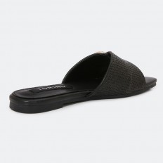 Comfortable and practical flat slippers with an elegant design, adorned with a golden accessory, suitable for daily use.